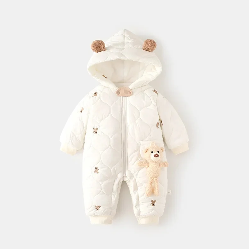 La capuche intégrée, ornée d’oreilles d’ours, assure une isolation supplémentaire, gardant la tête et les oreilles de votre bébé à l’abri du froid. Ce design pratique et fonctionnel est idéal pour les parents en quête de facilité d’habillage grâce à ses fermetures pratiques qui rendent l’enfilement simple et rapide.