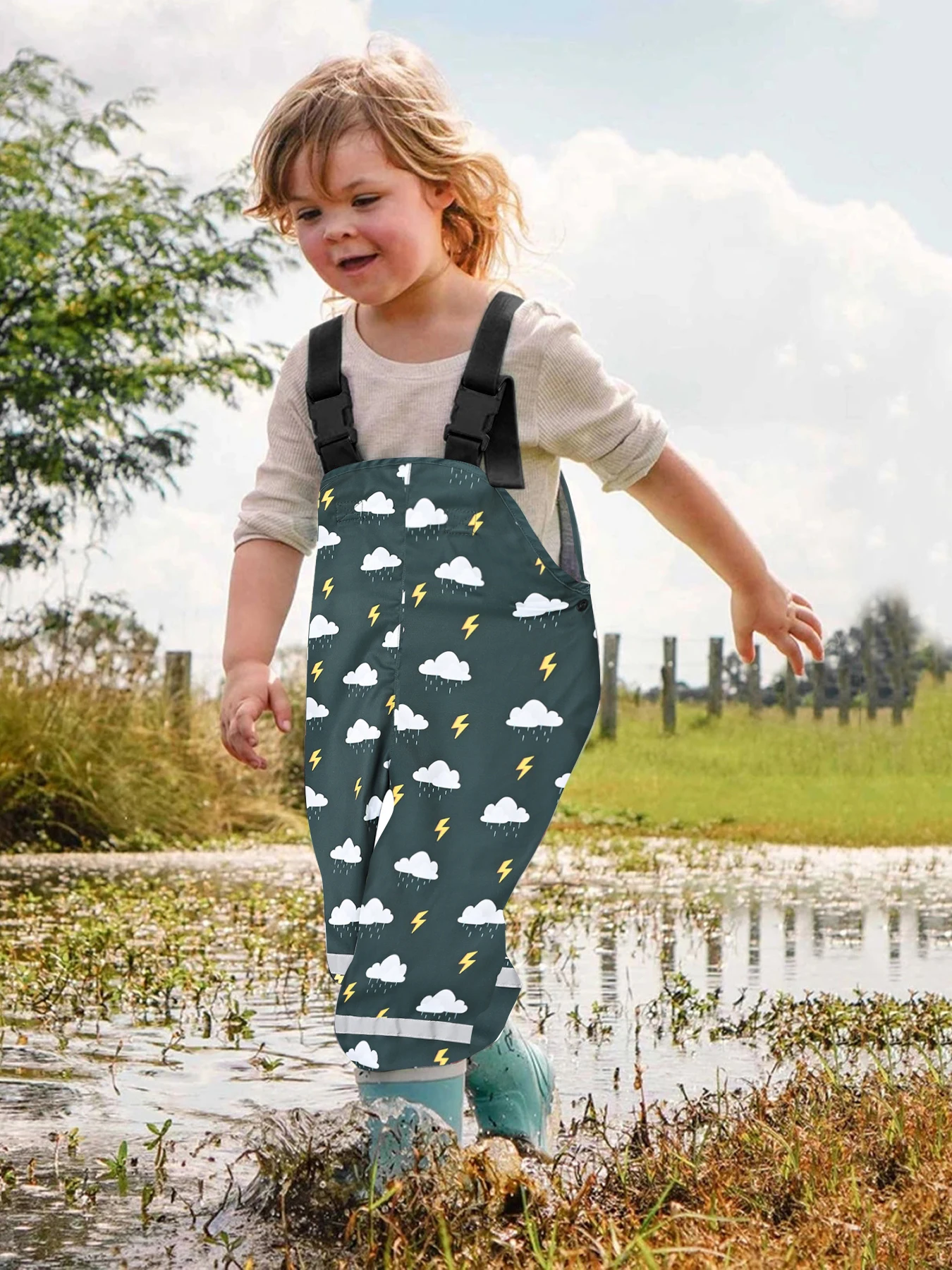 Imaginez votre enfant joyeusement en train de sauter dans les flaques, en toute insouciance, grâce à la combinaison pluie. Cette image d’aventures pluie incarne la joie enfantine qui peut être vécue même lors de jours pluvieux.